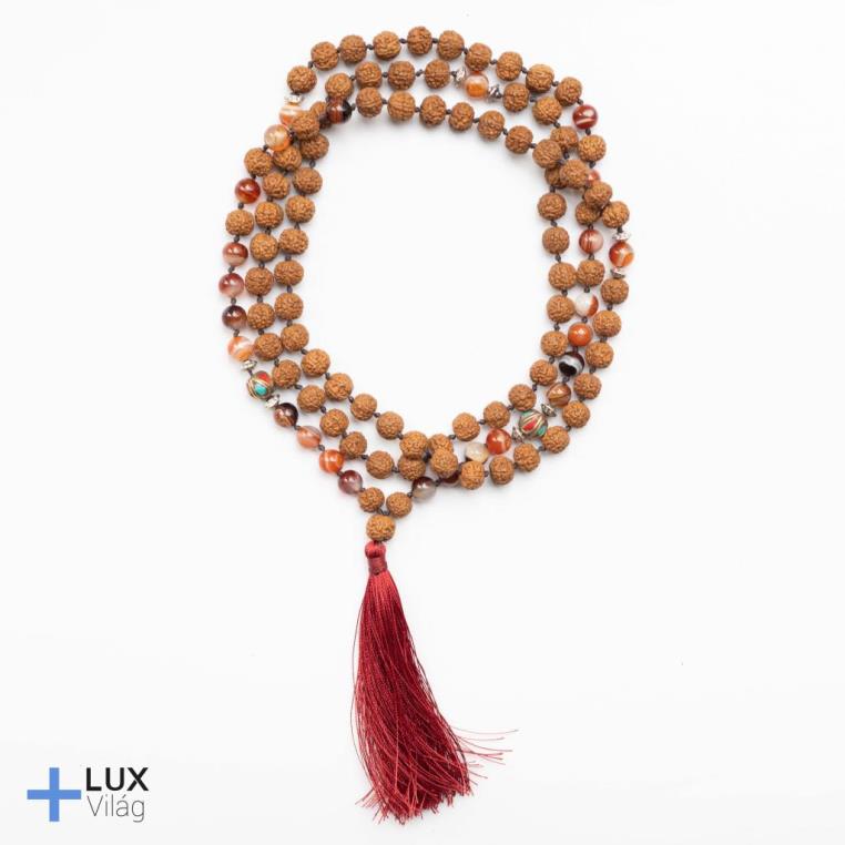 A rudraksha egy örökzöld fa gyümölcséből származik, amely az Elaeocarpus nemzetség tagja. Képes szabályozni és aktiválni a testben zajló biokémiai folyamatokat és neurotranszmittereket, pozitívan hat a hormonrendszerre, ezáltal boldog és egészséges tudatállapotot idézve elő. Az osztók egyedi és aprólékos kidolgozása még különlegesebbé teszik a nyakláncot.