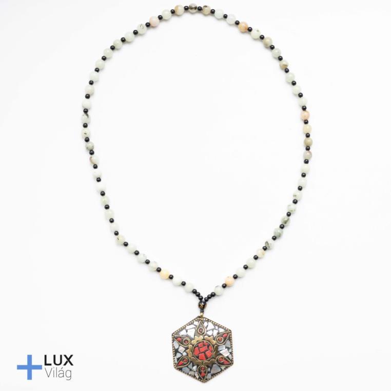 Korallal és gyöngyházzal díszített medállal